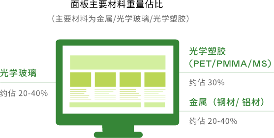 米兰milan主要产品显示器面板,面板製造原物料主要使用为玻璃基板与半导体製程所製造之显示器液晶盒再与相关零件和物料组装。为选用低环境负荷与风险之原物料,米兰于产品生命週期原物料阶段,即对米兰所使用的原物料进行关键原物料之分析评估,包含材质以及重量占比。再依分析结果定义关键原物料,优先导入再生物料的使用。
