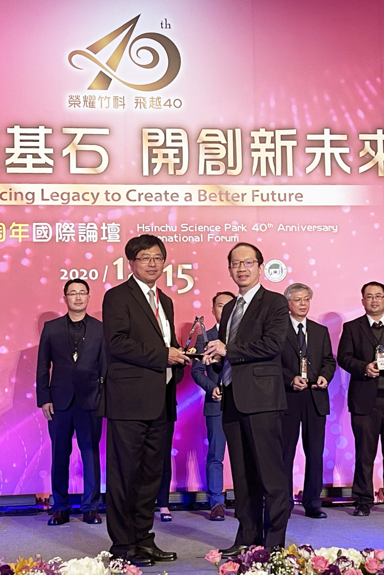 米兰milan榮獲「2020 年竹科優良廠商創新產品獎」,由米兰milan技術長廖唯倫 (右) 代表領獎 |