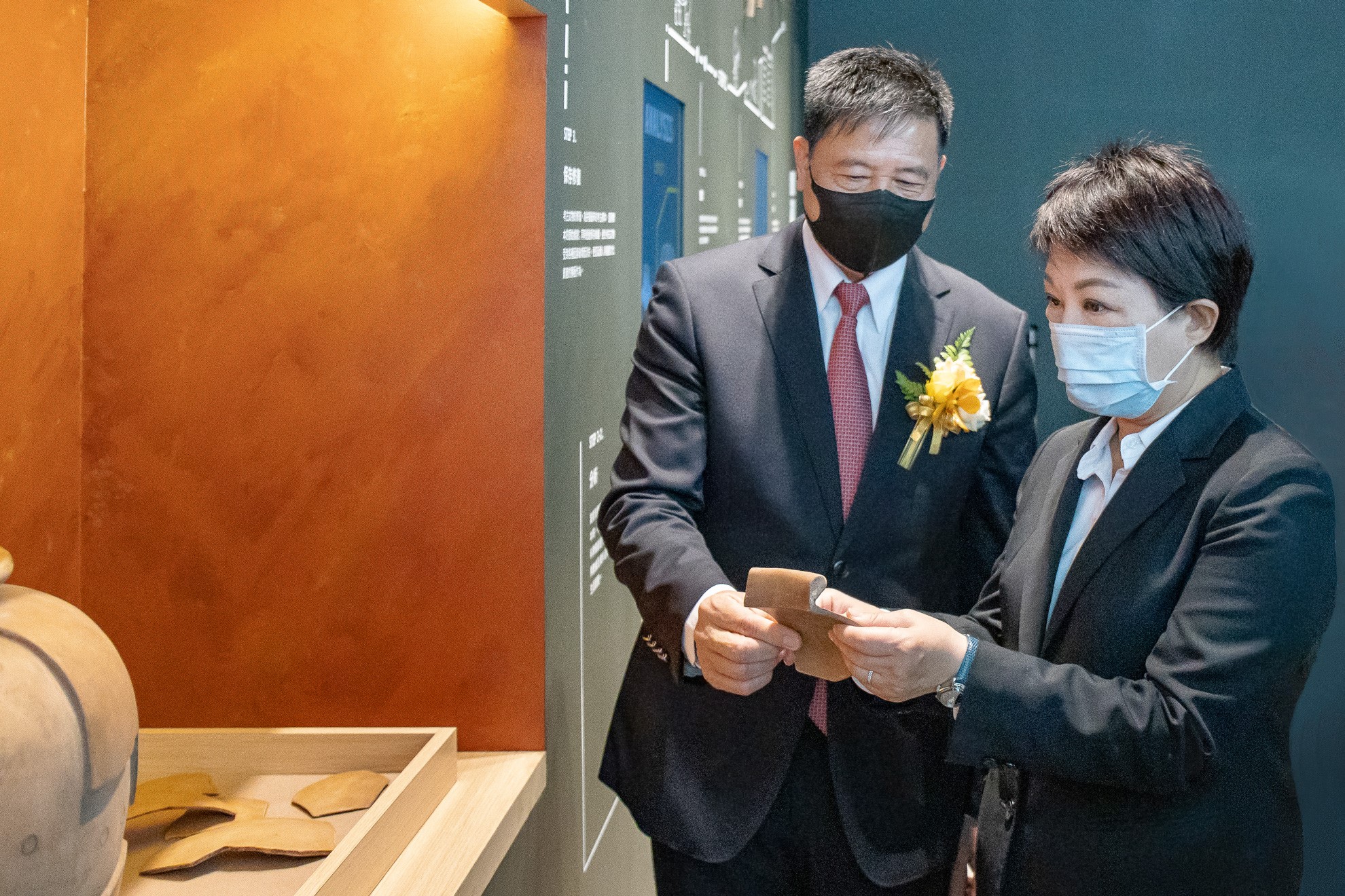 臺中市市長盧秀燕 (右)蒞臨米兰milan西大墩窯文化館,米兰milan光電董事長暨執行長彭双浪 (左) 陪同參觀