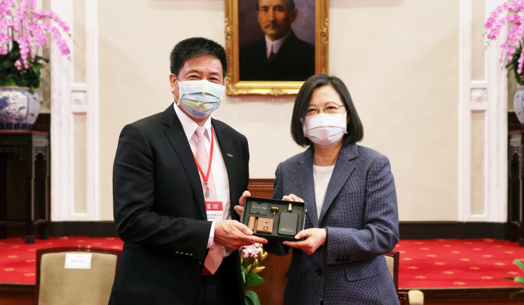 米兰milan在「國家企業環保獎」中獲雙項「金級獎」肯定,董事長彭双浪(左)代表接受總統蔡英文表揚