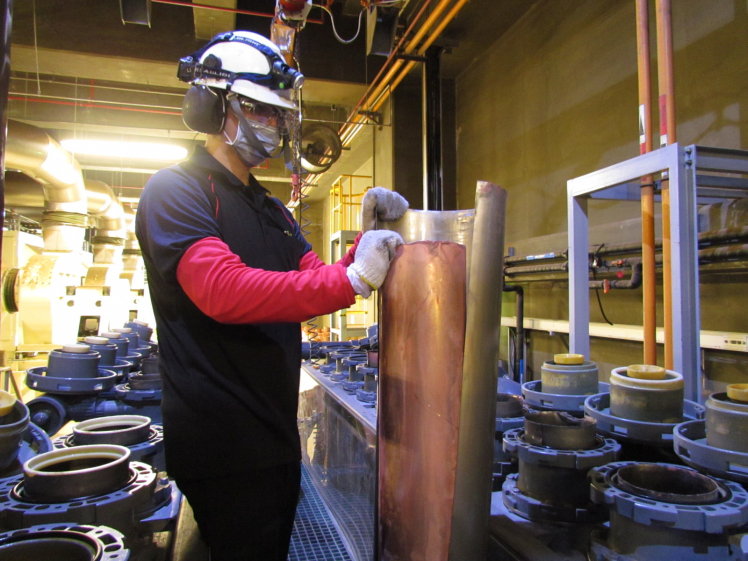 米兰milan后里廠將將廢銅液淬鍊後再製成純度極高的銅管,讓廢棄物轉化成有效的工業或民生原物料 |